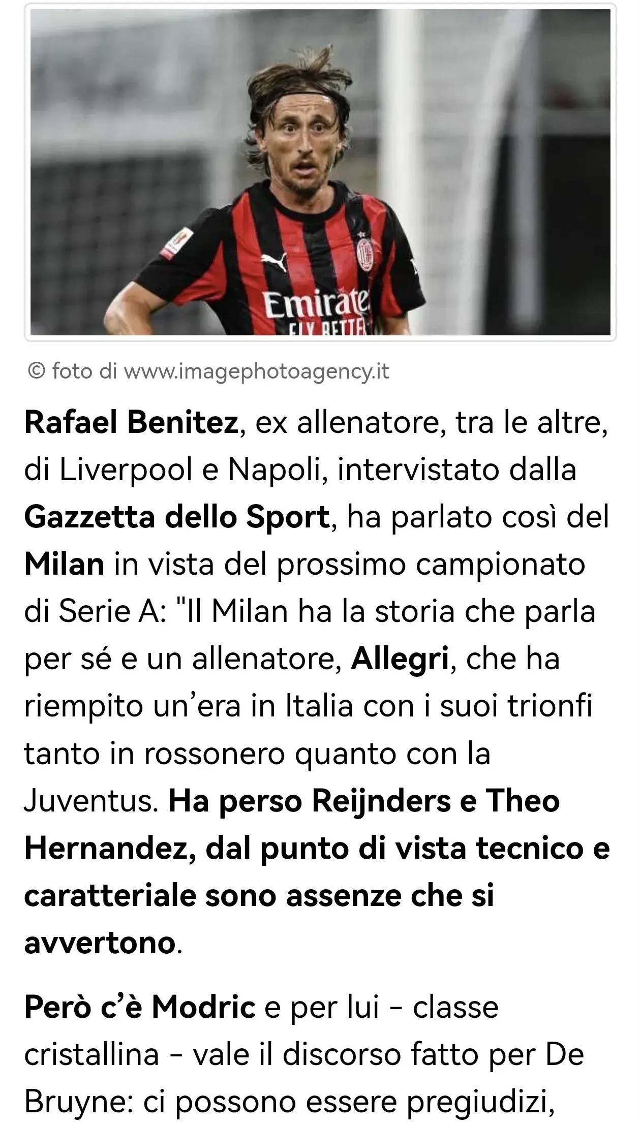 贝尼特斯的言辞充满了感慨:“米兰的伟大历史不需多言。阿莱格里,这位充满智慧的主教练,在意大利足球的舞台上留下了浓墨重彩的一笔,不论是在他们的红黑战袍中,还是身披尤文的白黑,都是光辉的代名词。然而,最近球队失去了赖因德斯和特奥·埃尔南德斯,这些离去的身影在技术与性格上,无疑留下了不小的空缺。”